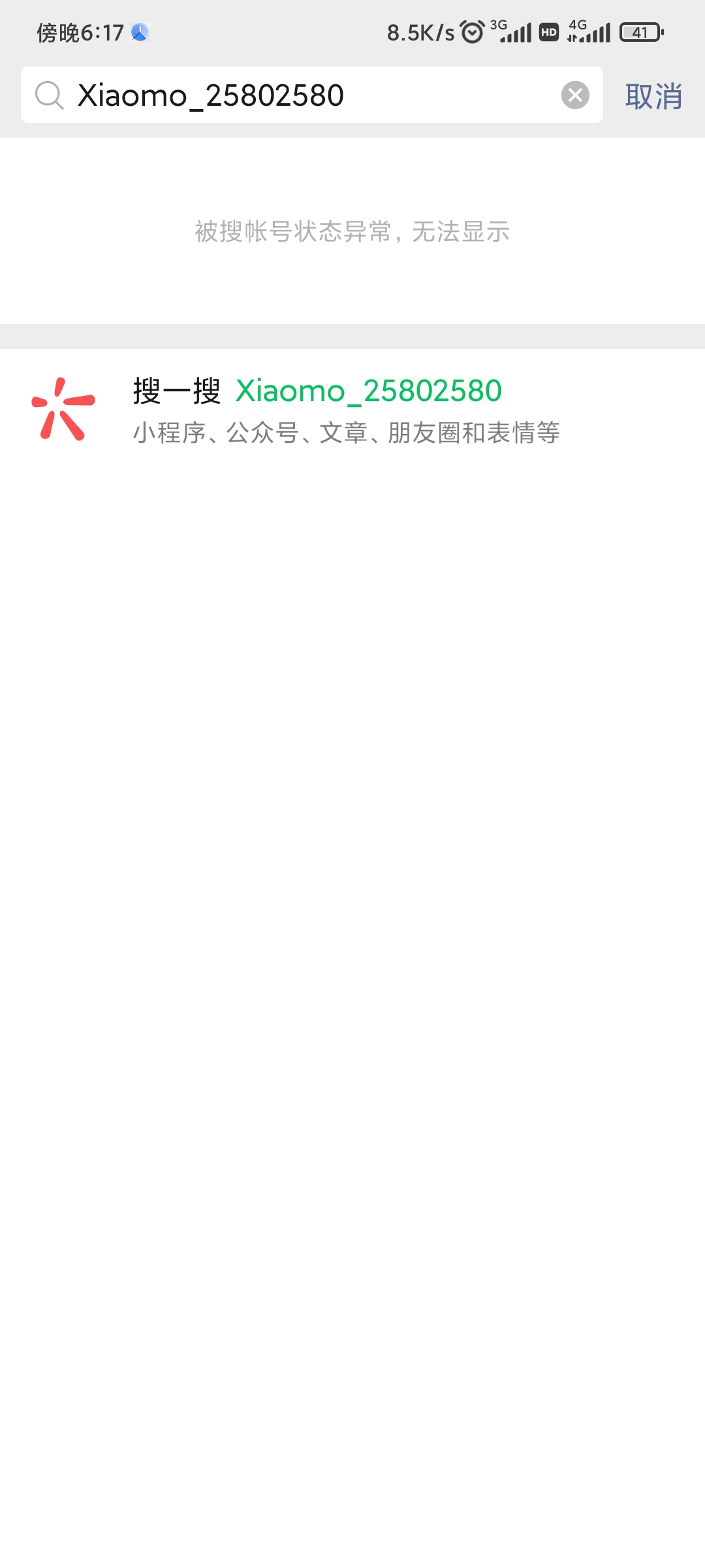 搜索账号异常 审核中