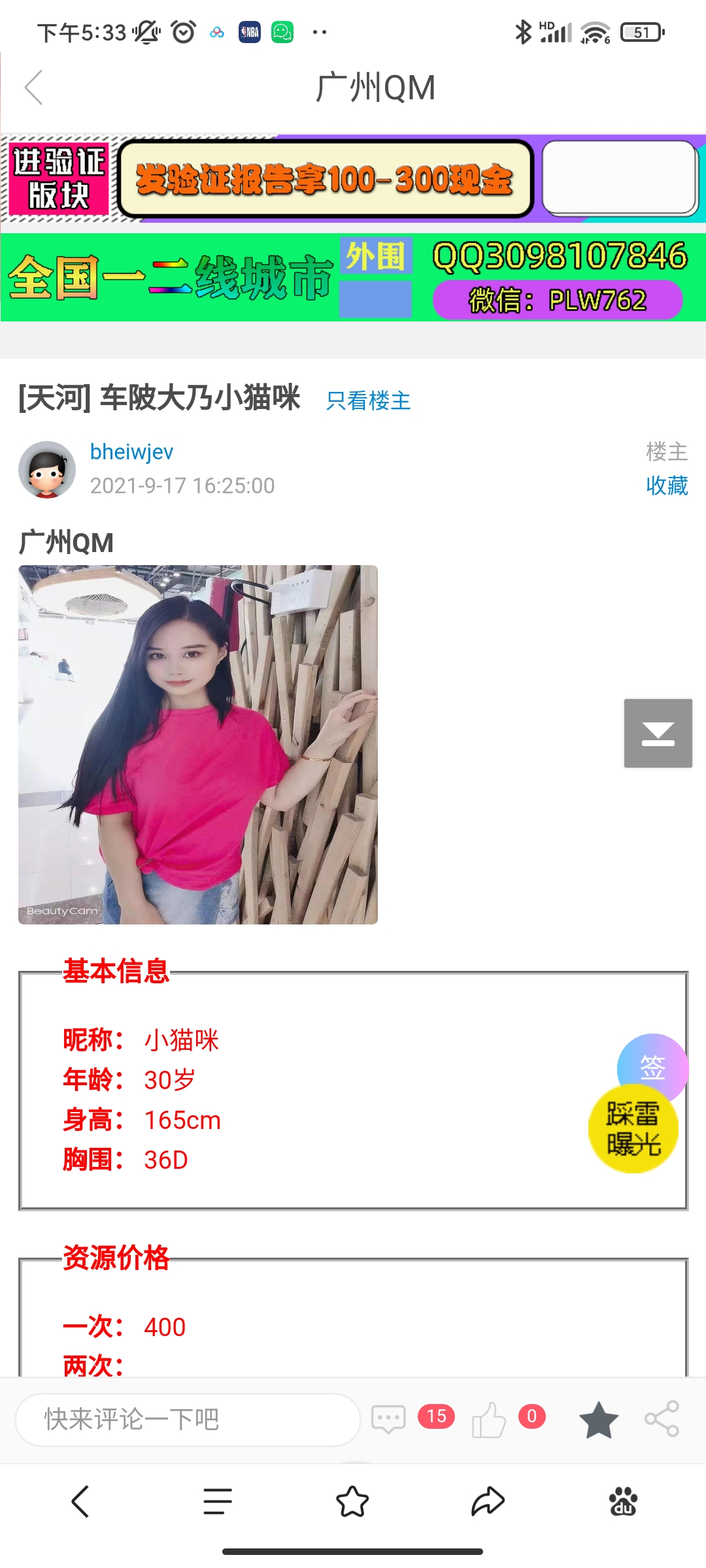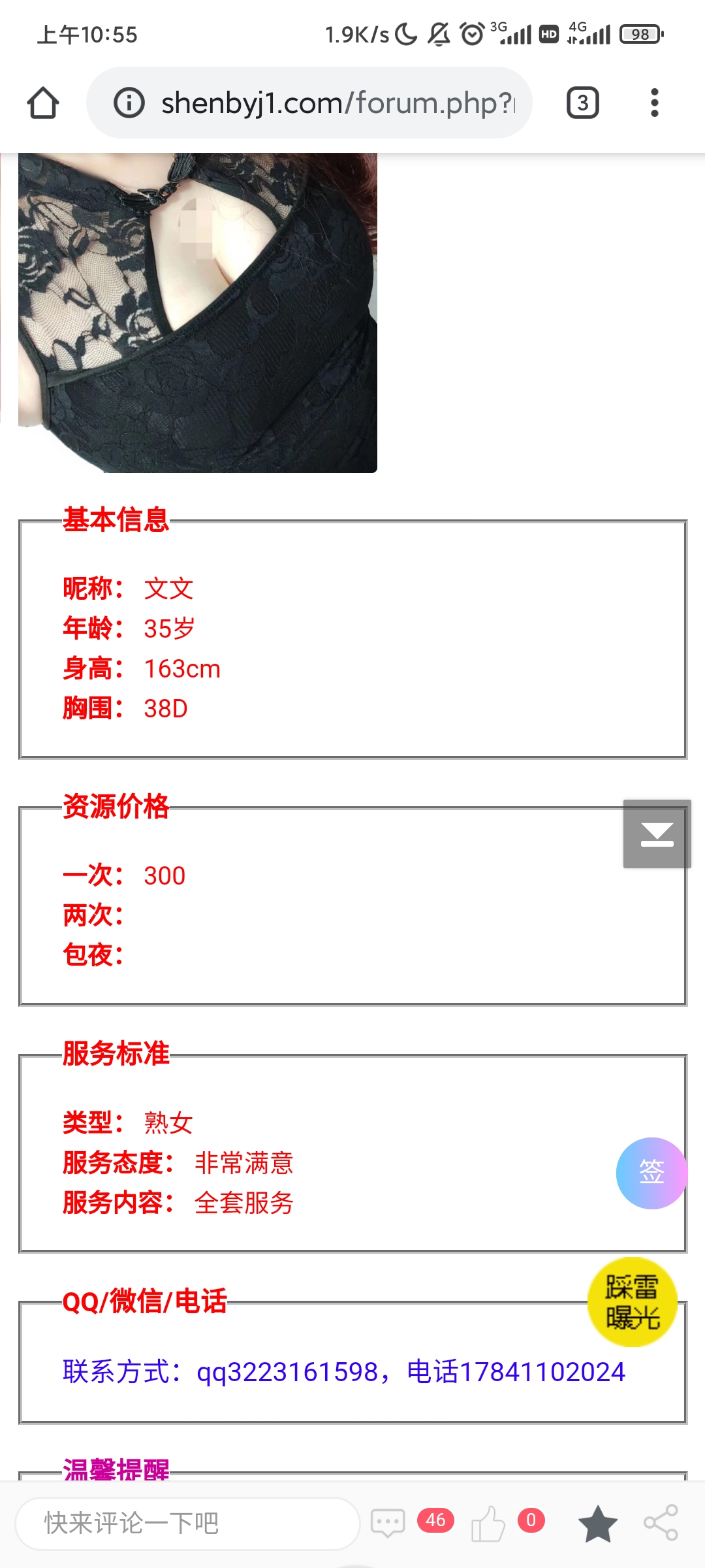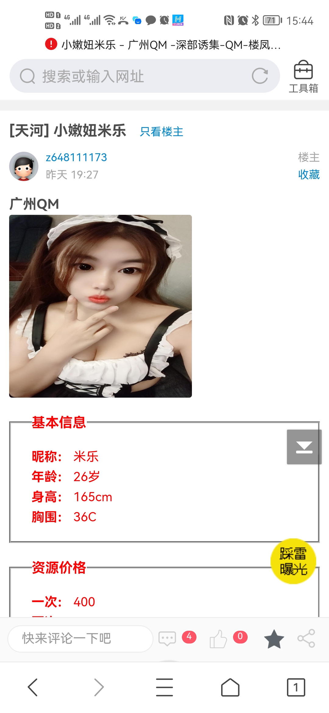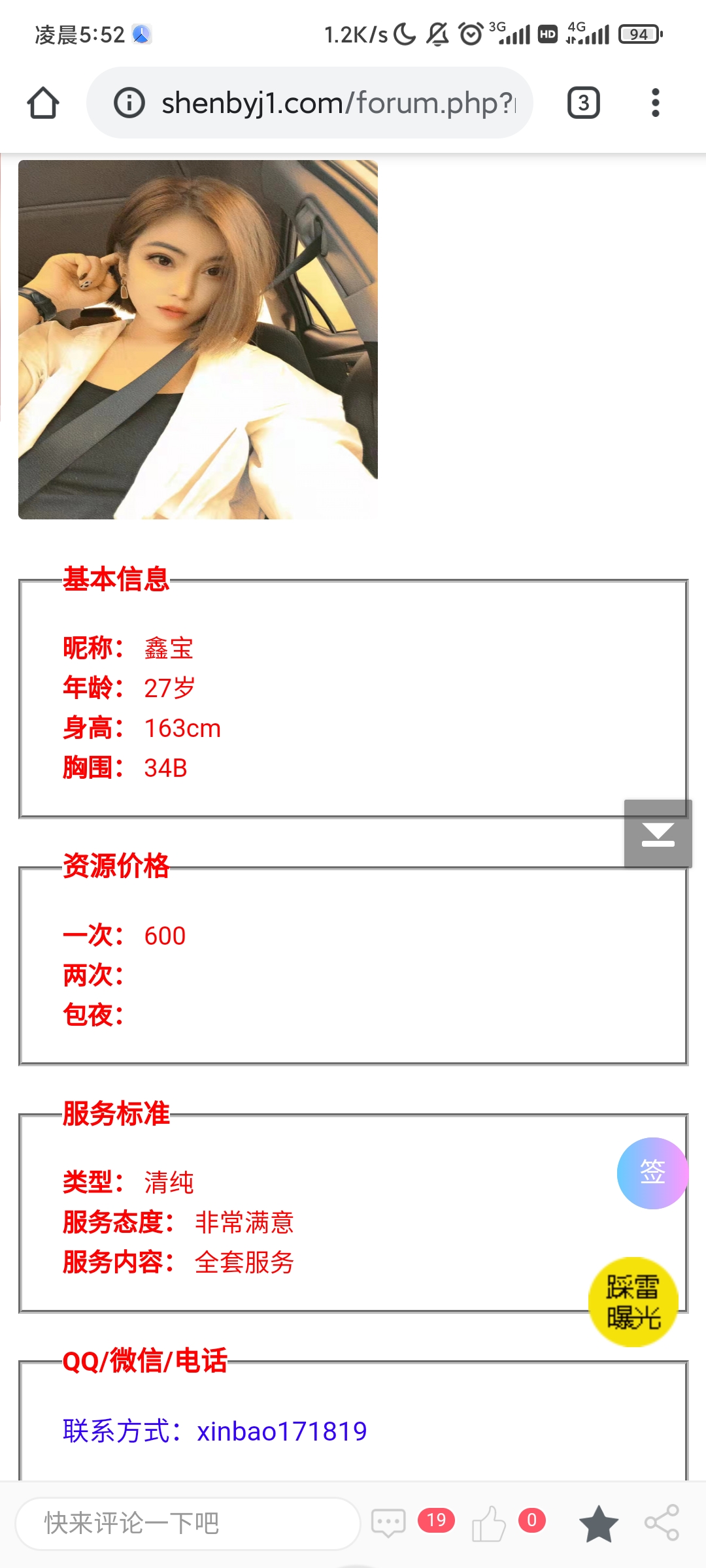 这就是个鸡头宣传假信息,长的一般还收700,加服务还要900,而宣传直说600。之前就举报过,现在又来了,还 ...