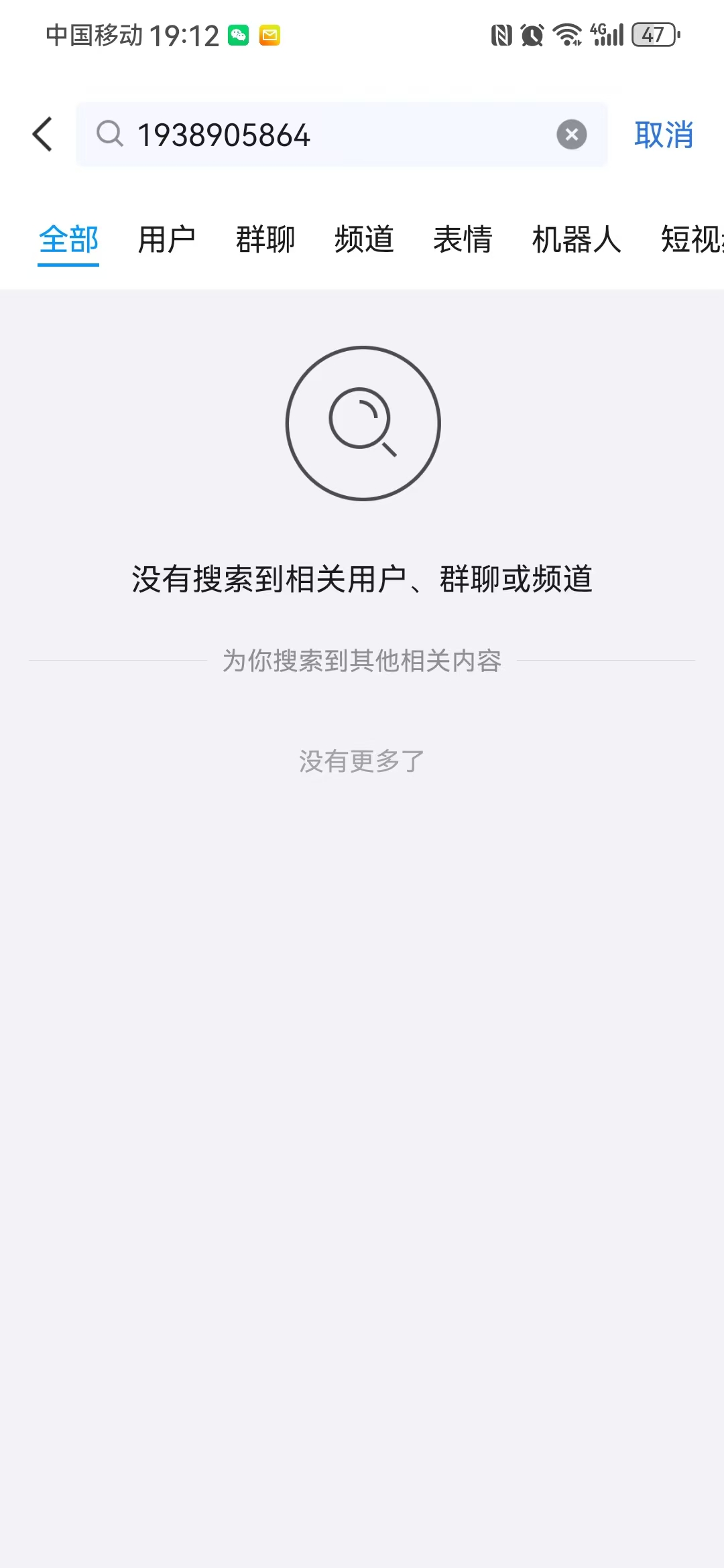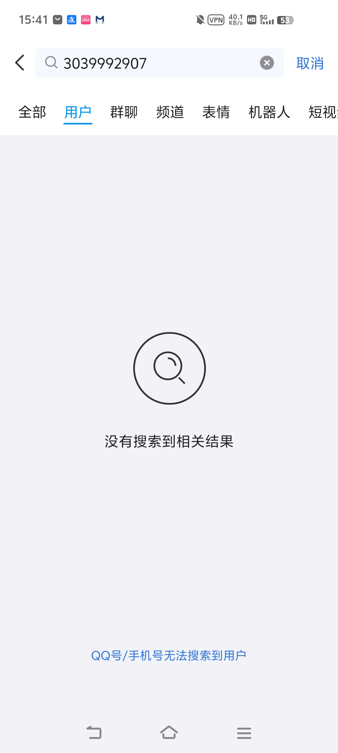 搜索不到用户 已退回
