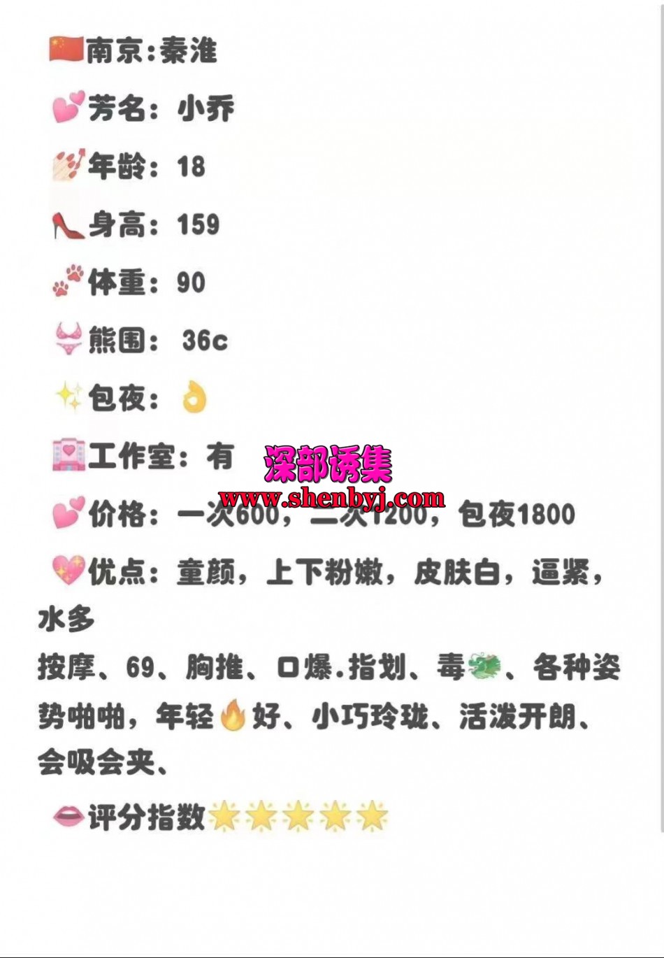 每个月10天左右在南京。身材很好,前凸后翘,屁股大,教舞蹈的,性价比一般,见仁见智。 ...