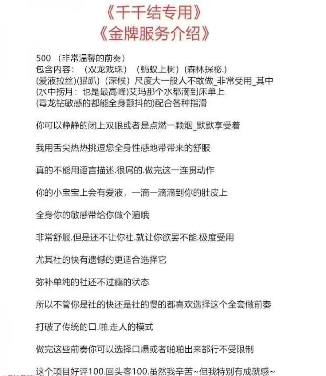 闲来无事,在平台上看到很多夸赞的帖子,便买了联系方式,加上微信,简单聊了下,还发照片让确定是否对胃口 ...