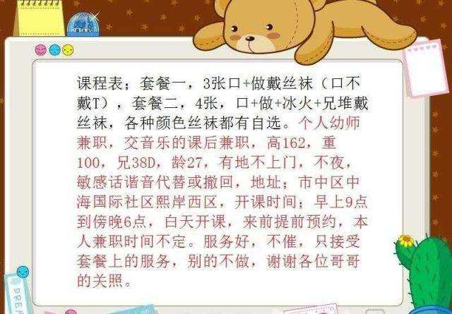 小姐姐幼师简直,一般提前约,早九点晚六点,中海国际附近,服务好不催!! ...