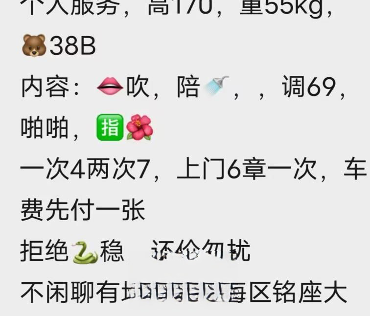 挺骚的服务还行,能一直口到射,也可以带套做,但是人确实挺胖的。