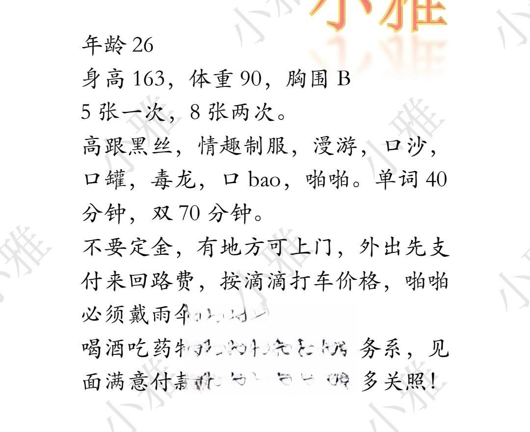 前几天cj了小雅老师。人照基本一致,环境好,有一次性床单,课表的服务都有,Is的服务态度很 。Is口活很舒 ...