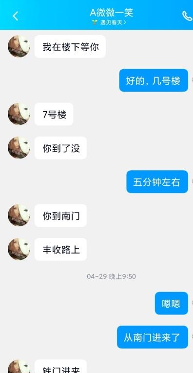 加了以后约的时间,全程指挥到楼上,进屋以后聊天开始,包了个时,去的时候喝了点酒 [详情...]