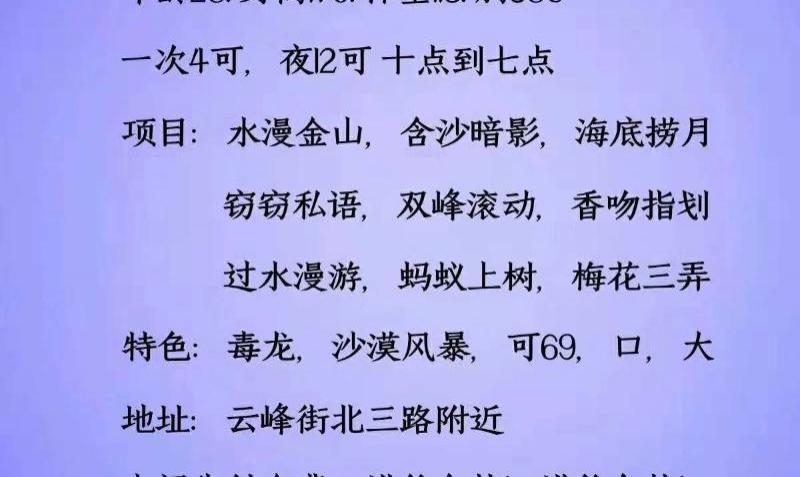 朋友介绍的还没有来的急去体检,美女的服务很全,口直六九毒龙,沙漠风暴,蚂蚁上树,水漫金山,香吻指滑梅 ...
