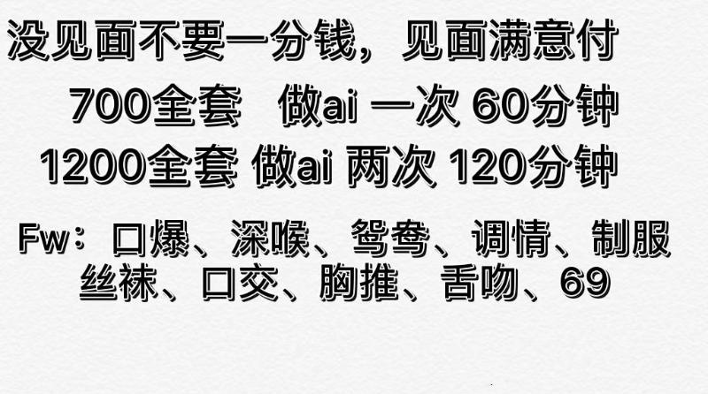 卸货熟女,个人住的地方和环境还可以,胸和屁股都不小,舔鸡巴最卖力。 对老顾客非常好,去了好吃好喝的招 ...