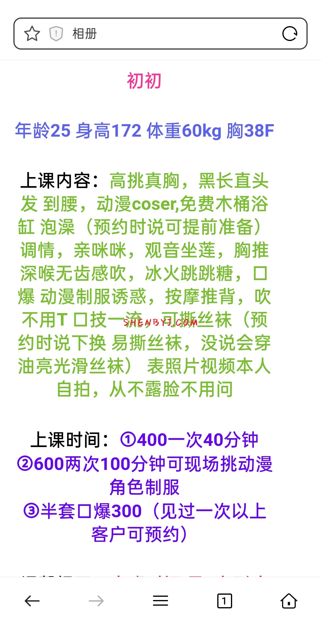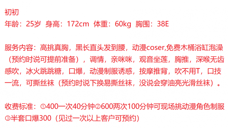 有点是小少妇类型。既然是服务控,服务当然还可以的,课表的服务都会做完,百依百顺的。 ...