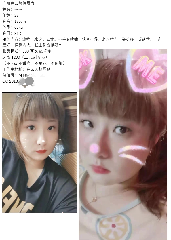 也是之前去过的推荐的,8,9分像吧,有168这样高,波仔大D,不过有点下垂,小肉肉感 5张大洋,洗剪吹正常服 ...