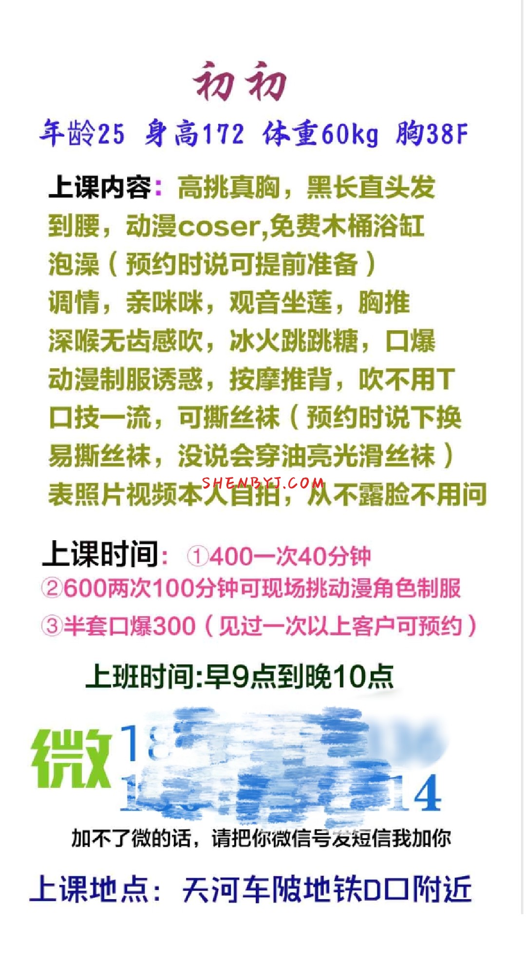 约过好几次了 也换了几个地方 但是都是在白云附近 服务挺不错 屁股也大