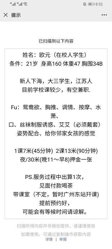 广州东橙子介绍的闺蜜,还是很值得信的,这小嫩妹还是个大三的学生,年轻啊,可以试试,刚开课没几个月 ...